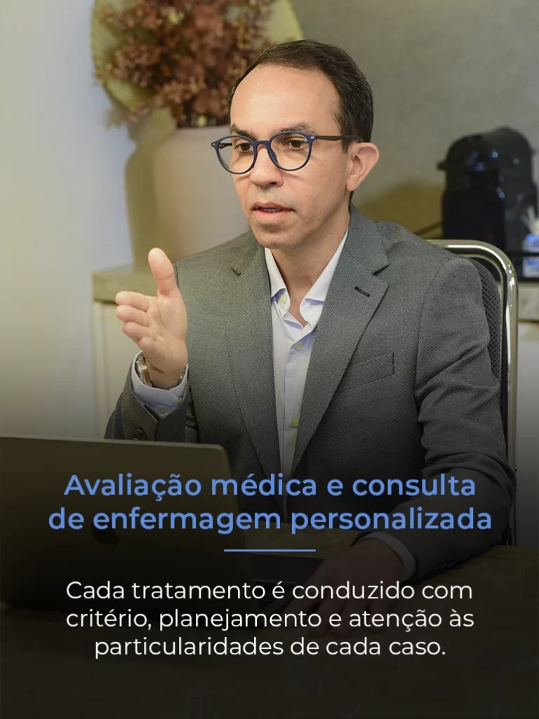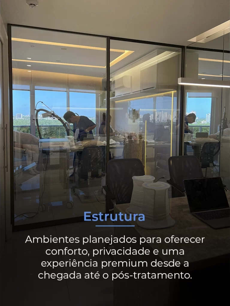 Com ampla experiência em técnicas minimamente invasivas, realizo tratamento sem cortes, com uma fibra de endolaser em nossa exclusiva Flebosuite — um ambiente estruturado para garantir segurança, precisão e conforto, superando o padrão hospitalar tradicional em centro cirúrgico.
